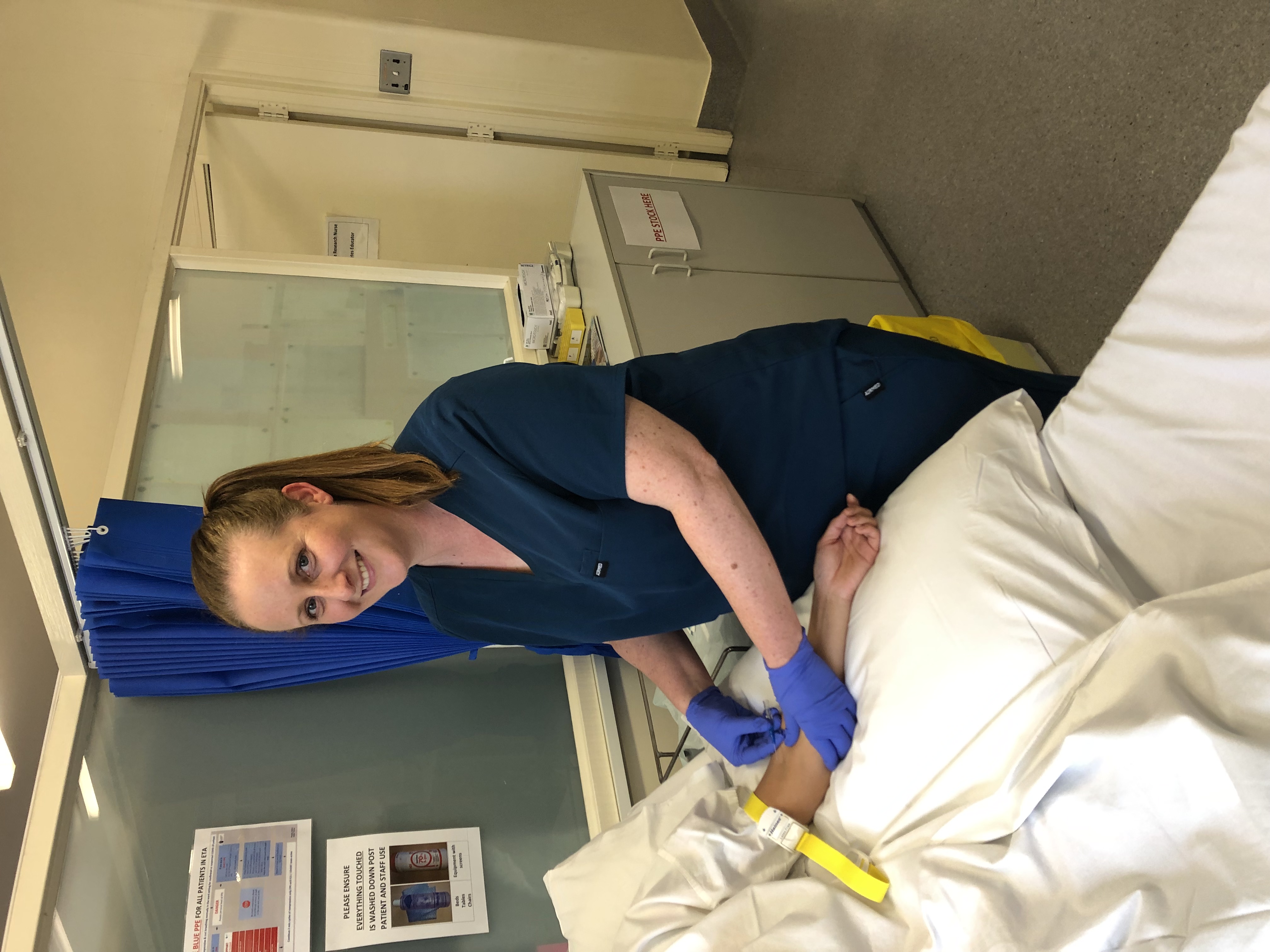 PHOTO: Maresa Derbyshire, St Vincent's Hospital Melbourne Endocrine Testing Nurse looking after a patient.